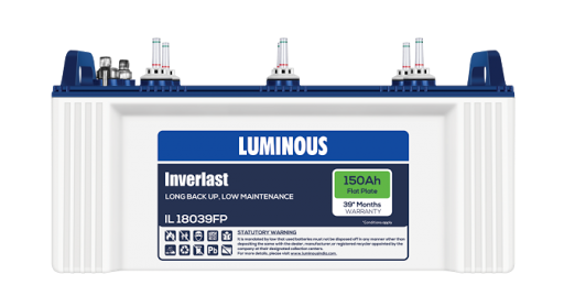 Best in class Luminous Inverlast series of flat plate batteries with robust design , excellent charging aceeptance, low water loss, enchanced life (Thickplate construction with special paste formulation) for the areas with frequent power cuts. The battery uses more plates, means more surface area giving more power. Factory-charged and ready for commissioning.